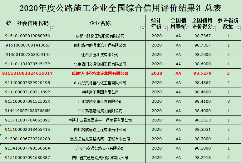 集團(tuán)連續(xù)四年榮獲交通運(yùn)輸部公路施工企業(yè)全國(guó)綜合信用評(píng)價(jià)AA級(jí),得分98 53分,再創(chuàng)歷史新高。自集團(tuán)成立以來(lái),一直秉承創(chuàng)造價(jià)值、鑄造品牌