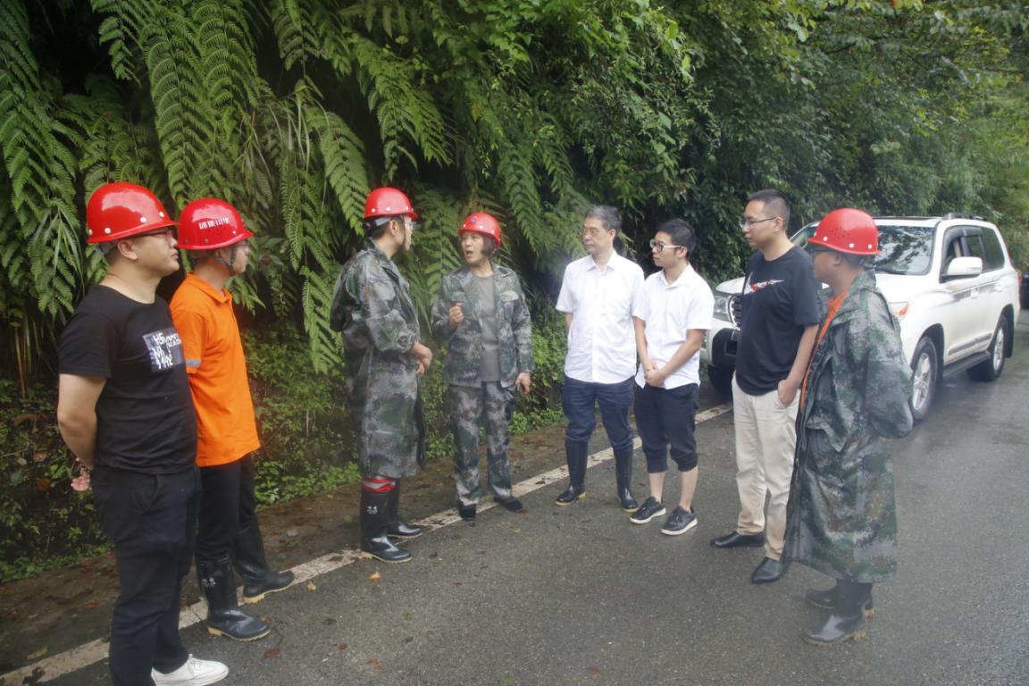 21日大邑縣縣委書記李燎等領(lǐng)導(dǎo)現(xiàn)場查看道路損毀情況