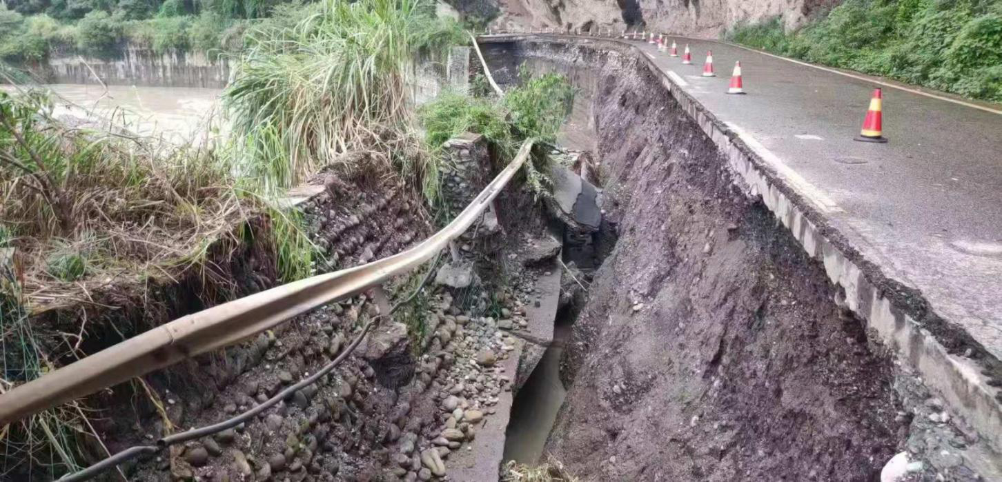 崇州市雞冠山路全長近42公里,受此次強(qiáng)降雨影響,已探明其中31公里路段有24處斷點,其中5處路基沖毀嚴(yán)重,有的路段半幅路基路面被山洪沖垮,有的路段路面懸空,有的路段全部被洪水沖毀。