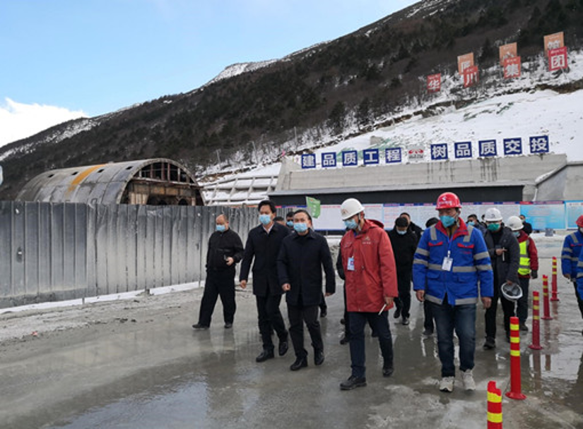 2月25日下午,四川省副省長(zhǎng)、省公安廳廳長(zhǎng)葉寒冰率甘孜州州長(zhǎng)肖友才一行折多山隧道施工現(xiàn)場(chǎng)對(duì)項(xiàng)目疫情防控、復(fù)工復(fù)產(chǎn)和生態(tài)環(huán)保工作情況進(jìn)行了調(diào)研并慰問(wèn)現(xiàn)場(chǎng)施工人員。
