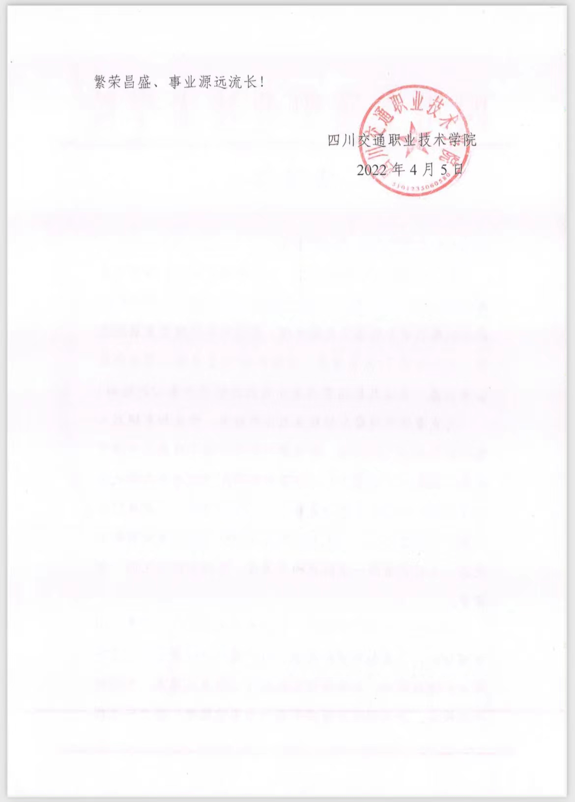 近日,四川交通職業(yè)技術(shù)學(xué)院發(fā)來感謝信,對華川集團在交職院建校70周年之際捐建校園道路改造項目表示衷心的感謝。
