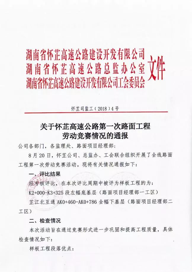 [華霆:懷芷路面]榮獲懷芷公司路面工程勞動(dòng)競(jìng)賽通報(bào)獎(jiǎng)勵(lì)
