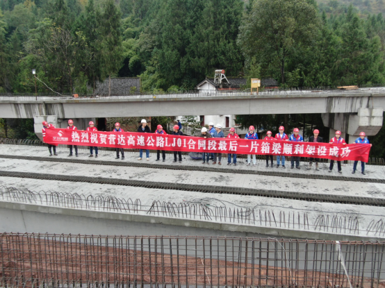 2019年4月8日完成新店樞紐互通施工區(qū)域的土地和房屋征拆協(xié)議簽訂;6月5日成功實(shí)現(xiàn)巴南廣高速封道施工,4座下穿現(xiàn)澆橋梁拉開(kāi)施工大幕;8月6日,新店互通樞紐主線橋首片箱梁架設(shè)成功;11月7日,新店互通樞紐主線橋最后一片箱梁架設(shè)成功;11月14日,主線路基完成交驗(yàn);11月18日,最后一聯(lián)現(xiàn)澆箱梁順利完成澆筑;今日,順利完成新店樞紐互通最后一片梁板架設(shè)任務(wù)。一個(gè)個(gè)難關(guān)被攻克,一個(gè)個(gè)捷報(bào)傳來(lái),全體參戰(zhàn)人員無(wú)不歡呼鼓舞。