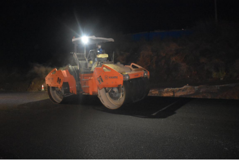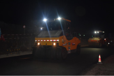 在各施工現(xiàn)場,不懼嚴寒、熱火朝天。攤鋪機、壓路機、運料車等各類施工機械一派繁忙,全體人員履職盡責(zé)、分工協(xié)作,各項施工作業(yè)有序進行著。項目領(lǐng)導(dǎo)班子工作重心前移生產(chǎn)一線,實行現(xiàn)場辦公,第一時間解決施工重難點,日夜巡查督導(dǎo)質(zhì)量安全、施工進度、材料保供等工作內(nèi)容,確保項目生產(chǎn)高效推進;工程人員加強前后場的相互配合、按需供料,保證施工不間斷;5+2、“白+黑”、雨加晴,24小時堅守崗位、奮戰(zhàn)一線,嚴格按照施工技術(shù)及標準規(guī)范高標準、嚴要求開展每天的施工任務(wù);時刻緊盯每一個施工環(huán)節(jié),嚴格控制施工質(zhì)量,一一落實混合料配合比、溫度、厚度、寬度、攤鋪、碾壓等質(zhì)量控制要點,確保攤鋪、碾壓等工序的有序銜接;同時強化安全規(guī)范操作,嚴防各類安全事故發(fā)生。